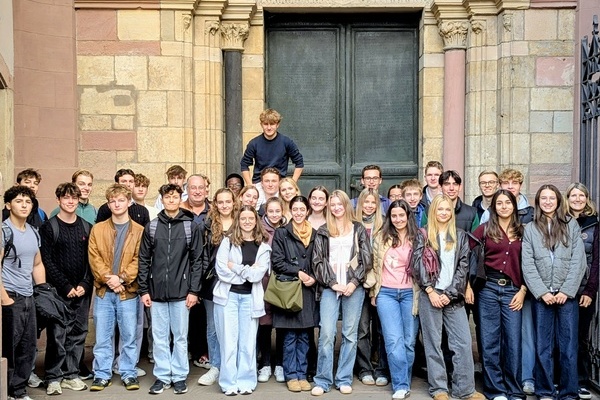 Bei herrlichem Sommerwetter waren die Klassen 8b und 8e am 24.06.25 mit Frau Arbour und Herrn Essert in Worms unterwegs. Auf den Spuren des Weltkulturerbes „SchUM-Städte“ stand zuerst der älteste jüdische Friedhof Europas auf dem Programm: Der Heilige Sand. Hier konnten wir Gräber finden, die sich bis zurück ins Jahr 1058 datieren lassen. Als nächstes ging es weiter zur „Krone der Stadt“, dem Kaiserdom, der gemeinsam mit seinen Geschwistern in Mainz und Speyer zu den großartigsten Schöpfungen romanischer Kirschenbaukunst gehört. Hier grüßte uns Domdackel Helmut, bevor es weiter auf den Spuren des Reformators Martin Luther ging, der auf dem Reichstag zu Worms 1521 durch die berühmte Weigerung, seine Schriften zu widerrufen, die Reichsacht auf sich zog. Da Worms ebenfalls zentraler Schauplatz des Nibelungenliedes ist und die Stadt sich bereits auf die diesjährigen Festspiele zu Ehren der Nibelungen vorbereitet, ließ Herr Essert es sich nicht nehmen, eine kurze anekdotische Übersicht über die Lügen und Intrigen des Epos zu geben. Nach einer kleinen Erfrischung besuchten wir zuletzt die Martinskirche und das Lutherdenkmal, das zu den weltweit größten Reformationsdenkmälern gehört. Ein rundum gelungener Tag!