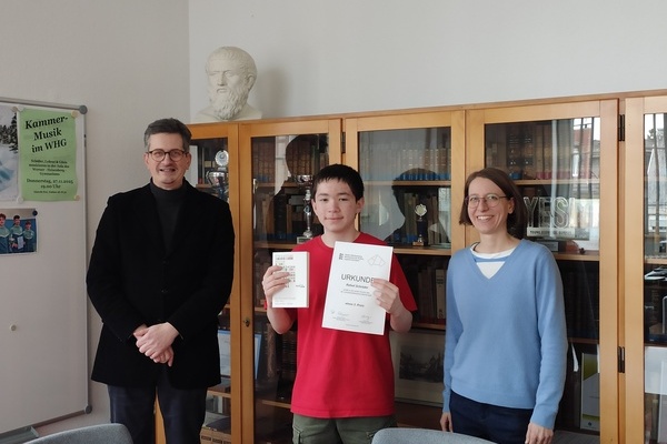 Nach den herausragenden Abiturergebnissen des Latein-Leistungskurses im letzten Schuljahrschreibt das am WHG sehr beliebte Fach erneut positive Schlagzeilen: Victoria Cipri aus dem Basiskurs der Kursstufe 1 schloss beim Landeswettbewerb „Alte Sprachen“ die erste Runde mit der höchsten Preiskategorie ab. Der Wettbewerb richtet sich an Schülerinnen und Schüler ab Klasse 10 und wird bereits seit 40 Jahren von der Stiftung „Humanismus heute“ ausgerichtet. Im Fokus steht die inhaltliche Auseinandersetzung mit antiken Texten und die Weitergabe des kulturellen Erbes der Antike bis heute.